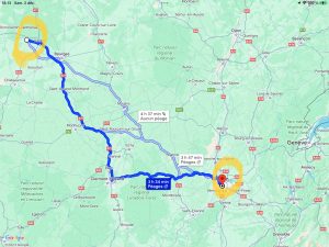 Départ de Mennetou vers Lyon, je décide d’affronter les autoroutes françaises. Limite de vitesse 130 km h et les péages. À quelque part dans le processus, je passe par dessus mon anxiété en me disant qu’il y a 75 millions de touristes qui sont passés en 2022 en France, ils ne doivent pas tous être des pilotes de Nascar !