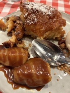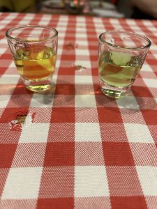 Les bouchons, ce sont des restaurants où l’on mange des spécialités lyonnaises arrosées par un pot de vin de la région. À cet endroit, il y a méprise entre une autre fille seule et moi, quand Diego me demande mon nom et que nous arrivons à la conclusion que j’ai un patronyme belge dans la pâtisserie belge (chouquettes), il me dit, je le savais, vous êtes une critique culinaire…et avant même que j’aie le temps de répondre, le voilà qu’il lance cela à la volée à Enzo, le sous chef dans la cuisine et on échange sur le Québec et sur la gastronomie et la largesse des plats, il fait chaud, on est bien, c’est une autre soirée agréable, je mange des escargots à la Pretty Woman et des quenelles au brochet, le dessert une gâteau moelleux trop bon et chartreuse en digestif pour savoir ce que c’est et que je confond avec l’absinthe. Deux couleurs pour la chartreuse, jaune et vert, historiquement la jaune moins forte pour les femmes et la verte plus herbacée pour les hommes. L’un dans l’autre, je ne suis pas capable de boire plus que de me tremper les lèvres, 55% d’alcool. C’est trop pour ma vache.